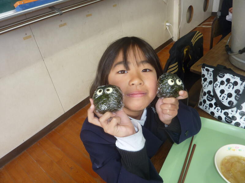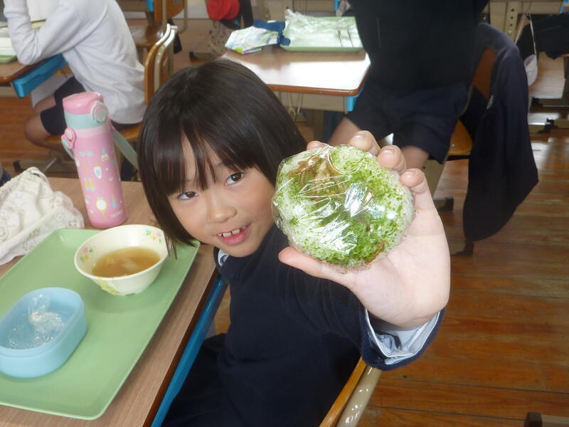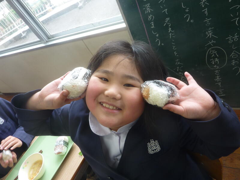 今日の給食は「おにぎり給食」でした。どの子も持参したおにぎりを大きな口を開けて、笑顔で食べていました。今日の給食では、おにぎりの中におかずが入っています。お米の味とともに各家庭の味をかみしめたのびっ子たちでした。おにぎりの花が咲く、楽しく、賑やかな時間となりました。