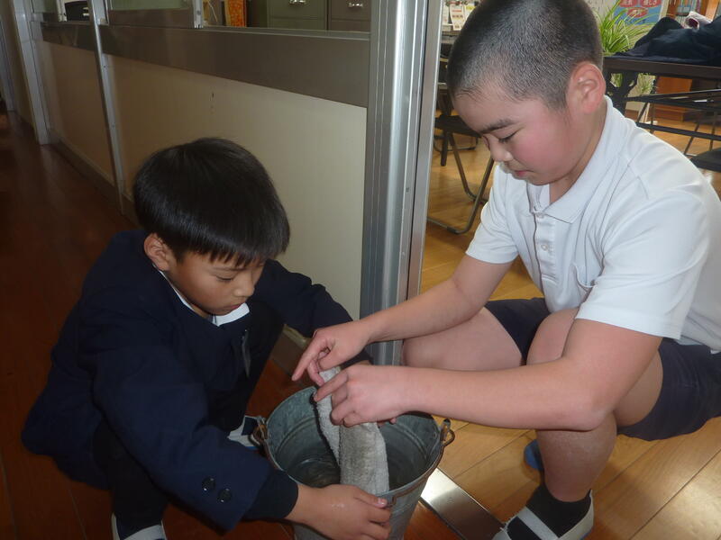 今日の掃除の時間は、縦割り班掃除を行いました。1年生から6年生までの全員が9班に分かれて、校内を時間いっぱい掃除しました。活動では6年生が中心となって、掃除の段取りを説明したり、1年生には適切な掃除の方法を教えたりするなど、学びの多い時間となりました。最後は反省会も自分たちで進め、互いを認め合い、助け合うという大切なつながりを体験したのびっ子たちでした。「のびっ子 ドラえもん・アンパンマン化計画」がスタートしたようです。