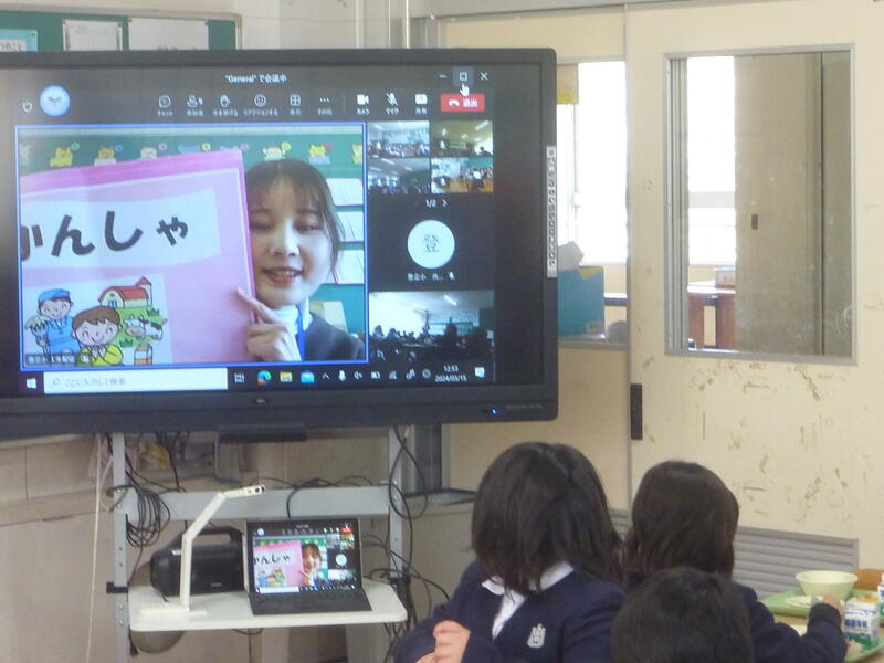 毎週月曜日を「イングリッシュ・デー」として、校内での日常会話をできるだけ英語を使うことをすすめています。「Hello」「How are you」「good morning」「Let‘s play soccer」など、のびっ子の明るい声が響く一日となりました。給食時間も放送委員会と一緒に献立の発表も英語で行いました。