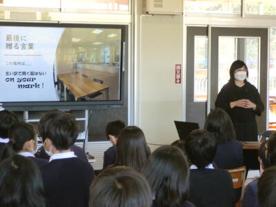 里帰り講話を行いました 投稿日時 : 2022/12/12 学校サイト管理者 熊本県教育委員会では、児童生徒のキャリア教育の一環として、東熊会(首都圏在住で熊本県出身の企業役員及び企業役員経験者で構成する任意の親睦団体)の会員を講師として、県内の小・中・高校で「里帰り講話」を実施しています。 その事業に申し込み、今回実施されました。 講師は、篠崎様(城西国際大学) 演題は、「私の仕事」~家を出る、熊本を出る、日本を出る~ です。 先生が訪問された、海外の国々の様子、文化、生活、人々の考え、食べ物、トイレ事情、等々、子供たちも、興味津々で聞き入っていました。終わった後に質問もたくさん行っていました。 Tweet