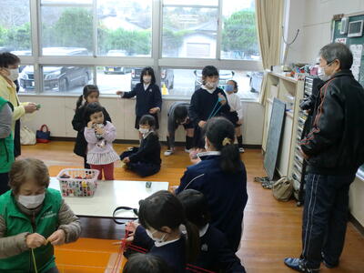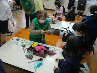 昔遊び お手玉やあやとり 民生委員さんや老人会の方々です