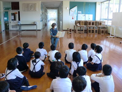 10月の読み聞かせ 投稿日時 : 2022/10/25 学校サイト管理者 今学期2回目の読み聞かせです。子供たちは、この時間を楽しみにしています。本に興味を持ち、自分でもどんどん読んでいってほしいものです。 1年生 ハロウィンのランプ(寺下先生) 2年生 料理をしてはいけないなべ、ぼくネコになる (松尾先生) 3年生 おばあちゃん星はなみだ色 (藤原先生 熊日童話会) 4年生 海を渡った折り鶴 (乗富先生) 5年生 ちよこ (藤本先生) 6年生 耳の聞こえないメジャーリーガー ウィリアム・ホイ (濵口先生) Tweet