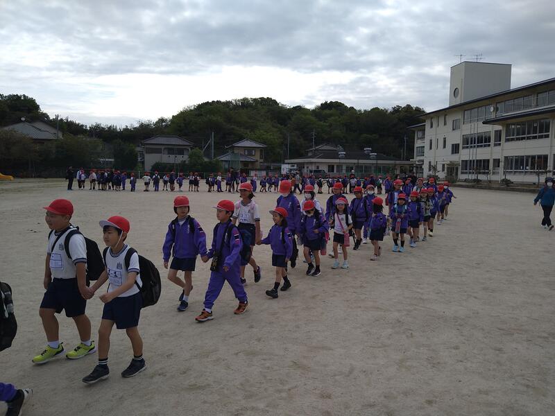 快晴の下、歓迎遠足を実施しました。167人のびっ子全員が片道4㎞、往復8㎞の道のりを歩き切りました。のびっ子全員で過ごした初めての活動でした。「のびっ子メモリー№1」として、心のアルバムに残す1日となりました。保護者の皆様、お弁当の準備、ありがとうございました。