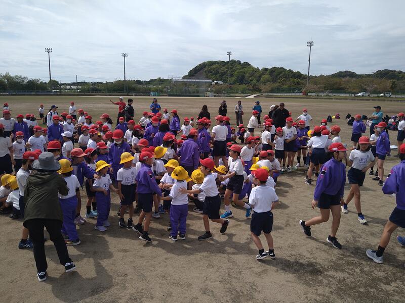 〔運動場に全員集合〕〔のびっ子SDGs大作戦も同時に進めました〕