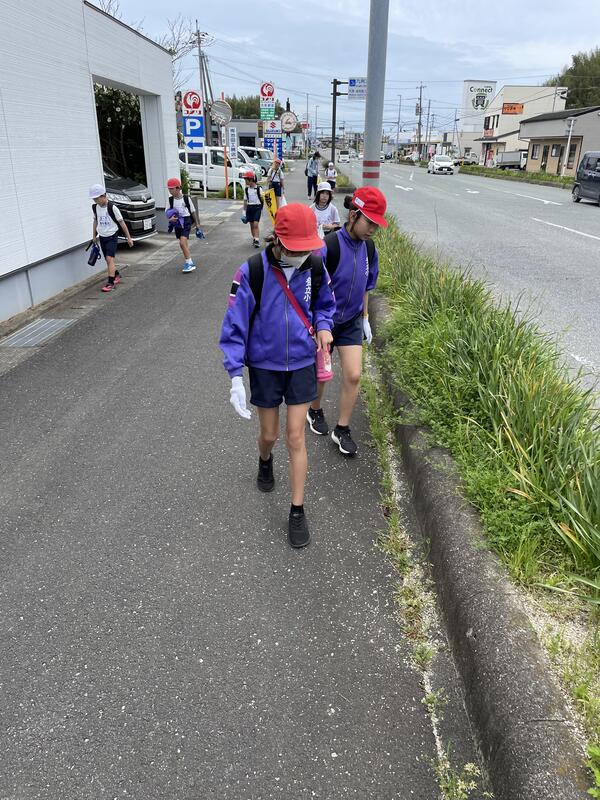〔復路ではのびっ子SDGs大作戦の一環で5、6年生が清掃活動にも取り組みました〕