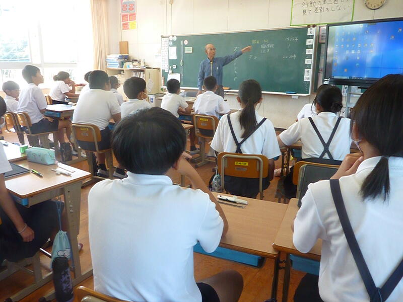 平和学習 投稿日時 : 2024/10/21 学校サイト管理者 修学旅行を控えた6年生が、学習の柱である平和学習の深まりを求めて講話を拝聴しました。いつもお世話になっている切通先生を講師にお迎えし、ご自身の幼少期の戦時体験をお話しいただきました。「小学生から見た戦争」と題し、小学校4年生から6年生までの体験をもとにした戦争の事実、そして、平和の尊さについて、子供たちにお伝えいただきました。深い学びの時間となりました。 Tweet
