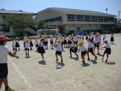 全校遊び(ドッジボール) 投稿日時 : 2022/09/12 学校サイト管理者 昼休みに、全校遊び(ドッジボール)が児童会の主催で行われました。 1,2年生対5年生、3年生対4年生、そして6年生対先生方 で行われました。白熱した対戦が行われていました。 1,2年生対5年生 5年生は、さすがにやさしく投げていました。 3年生対4年生 よく朝からドッジボールをしています。その成果がでたかな。 6年生対先生たち 両方とも本気で投げ合っていました。いい勝負でした。どっちが勝ったかは、それぞれの言い分があるようです。 Tweet