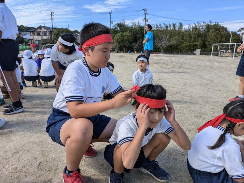 昼休みに縦割り班対抗リレー大会を行いました。のびっ子会のみなさんが、楽しい企画を考えてくれました。前回の玉入れに続き、全員で元気いっぱいに運動場を駆け回りました。笑顔が輝いていましたよ。