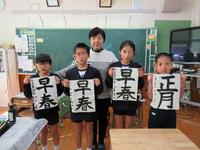 今年も笠先生に来ていただき、書写の指導をしていただきました。一人一人に、ポイントとなる箇所を細部まで丁寧に指導していただいたおかげで、子ども達の字がぐっと上達し、どの子も満足のいく素晴らしい字が書けました。子ども達もできあがった作品を見て、にっこりし、自信が湧いてきたようすでした。
