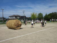 今日の3・4校時に玉名大俵まつりの出前授業がありました。3・4年生が参加し、玉名のコメ作りの歴史、なぜ大俵祭りが始まったのかを学習した後、実際に運動で大俵を引きました。初めての経験でまっすぐに進むことが難しいグループもありましたが、みんな力いっぱい引いていました。玉名の歴史、良さを再発見できる機会になりました。