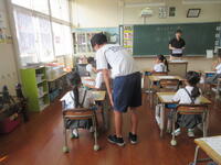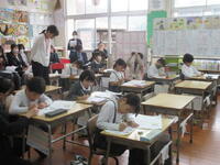 15日(水)に地震・津波を想定した避難訓練を行いました。地震発生の放送を聞き、机の下にもぐり、落ち着いて先生の指示を聞いて運動場に避難しました。運動場に避難した後、津波発生の恐れがあるという想定で学校東側の山の方へ避難しました。みんな真剣に取り組みました。