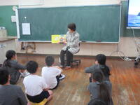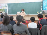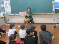 朝活動の時間に地域の読み聞かせグループ「オレンジてんてん」の皆さんと保護者の皆さんによる読み聞かせがありました。お話の世界に引き込まれ真剣に聞く姿が見られました。