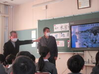 2・3校時に地域の濱﨑さん、池田さんにおいでいただき、昭和32年に小天地区で起きた、山津波(土石流)について学習しました。実際に避難された体験や土石流を防ぐための工夫などについて、写真を使い話していただきました。