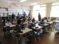 15日(水)に地震・津波を想定した避難訓練を行いました。地震発生の放送を聞き、机の下にもぐり、落ち着いて先生の指示を聞いて運動場に避難しました。運動場に避難した後、津波発生の恐れがあるという想定で学校東側の山の方へ避難しました。みんな真剣に取り組みました。