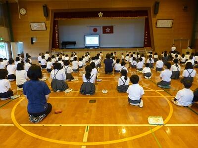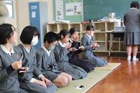 6年生の卒業プロジェクトの一環で、茶道の体験教室を実施しました。以前小天小にも勤務されていた赤松美知子先生に教えて頂きました。まずは、基本動作や茶道の心得を教えて頂きました。最初は緊張していた子供たちも、赤松先生の話術に引き込まれ、楽しい時間を過ごしました。