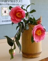 また、茶道の体験があるというお話をしたところ、水本先生が茶花として、自宅のツバキを持参してくださいました。とても美しかったので、赤松先生と相談して教室の後ろに飾りました。ありがとうございました。