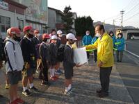 今朝、小天小の正門前で、天水町児童・民生委員協議会より、小天小へ登校班の贈呈が行われました。いつも子供たちの登校を見守っていただいていますが、本日は、今後活用できるよう登校班に1本ずつ登校旗をいただきました。今日は、児童を代表して5年生のかんざぶろうさんが登校旗を受け取りお礼を言いました。また、港地区の高学年の皆さんも代表で贈呈式に参加しました。