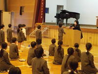 まずは、「ふるさと」を歌ってくれました。そのあと、6年生の気持ちを表した「やってみよう」の合奏、「この星に生まれて」の二部合唱と心を込めて披露してくれました。