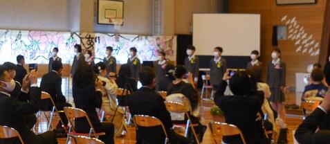 曲の間には、自分たちの感謝の気持ちをしっかり伝える呼びかけも、一人一人が堂々と胸を張り声を出す様子に、卒業まで頑張ってきた自信が伺えました。充実した一年間を過ごしてきたことが分かり、うれしくなりました。
