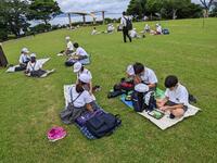 その後運動場に集合して、草枕温泉芝生広場に出かけました。週間天気予報では、雨を心配していましたが、当日は降水確率も低く、絶好の遠足日和よりでした。いつもは学校生活では黙活で頑張っている子供たちですが、野外で6年生と楽しく遊び、共に過ごす様子を見て子供たちの本来の姿があるなと実感しました。おいしいお弁当を食べて、あっという間の時間が過ぎ、少し早めの下校となりました。6年生と過ごす行事が一つ一つ終わっていきますね。遠足が実施できて本当に良かったです。
