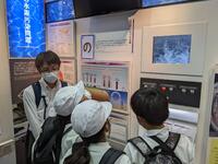 社会科の学習のため、玉名の主な施設をめぐりました。最初は、築地に新しくできた玉名消防署です。防災館で、スクリーンを見ながらお話を聞き、実際、水消火器での消火体験、スクリーンで災害体験や煙の部屋からの避難体験を行いました。また、お仕事の合間に消防車等の説明をしてくださいました。いろいろな種類の消防車やその役割に子供たちもおどろいていました。