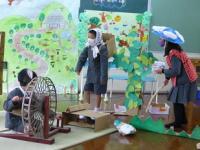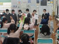 26日(火)の体験入学では、1年生がお兄さんお姉さんとして頑張りました。学習の様子を紹介したり、クイズを出したり、工夫をしながら、新入生を楽しませる内容を考えました。学校案内も新入生を挟んでお兄さんお姉さんになった1年生が案内するなど、がんばることができました。
