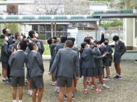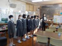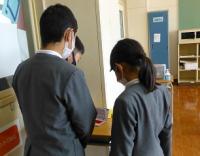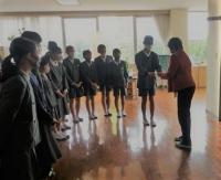 続いて、子供たちに向けて、新生徒会長の小川君のあいさつと新執行部から学校生活についての説明が行われました。プレゼンは、画像を使って分かりやすくまとめたものでした。その後、瀬戸会執行部に案内されて校内を見て回りました。小学校とは違った教室や作りに4月入学の期待もふくらんだことと思います。物品班場を終えて、部活動の見学も行われました。先輩たちの動きに、子供たちの部活動への期待も高まったようです。
