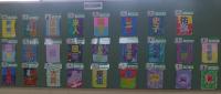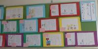 2年生学活「給食センターの先生方へのお礼の手紙」を仕上げていました。冬休みの絵日記も廊下に掲示。