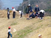 26日(月)は、PTAの渡邊さん・坂西さん・木村さん・谷川会長と、職員5名でいも畑のうねを作りました。4本のうねを立て、草がいもの成長を妨げないようマルチシートで丁寧に覆いました。皆さん手際が良く1時間ほどで終了しました。