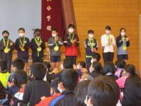12日(水)の児童集会で企画委員会から発表しました。団長二人も参加して、全校児童に発表することができました。