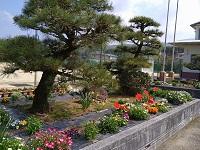 5年教室前エプロン展示、1年教室前ヒアシンスの鉢