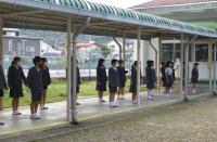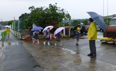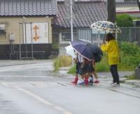 12日(火)民生委員の日ということで、町内の民生委員さん方が児童の登校を見守ってくださいました。あいにくの雨になりましたが、登校する子供たちへの声掛けや、安全に登校できるよう見守っていただきました。子供たちのあいさつをほめていただきました。しかし雨脚が強く、おうちからの送りも多かったため、登校班でまとまっての「遠くから」の大きな声のあいさつを見ていただくことができず残念でした。
