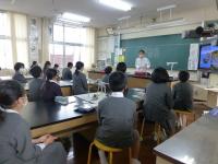 本日(2/1)天水中学校で、6年生の体験入学が保護者同伴で行われました。校長先生のあいさつ・プレゼンで、中学校生活の様子が少しわかりました。