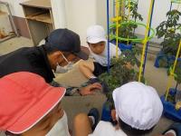 11日(火)2年生が育てるミニトマトについて教えて頂くため、ゆうたさんのお父さんとりなさんのお父さんに野菜先生として来校していただきました。ミニトマトの芽かきやお世話の仕方など、たくさんのことをていねいに教えて頂きました。