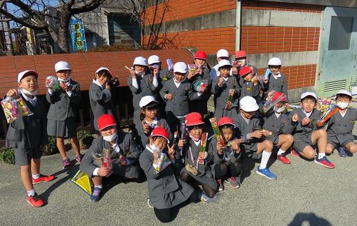 19日(火)2年生が天子宮前のおとうばさんで買い物体験をしました。今はなかなか自分で買い物に行けるお店が少なくなりましたので、子供たちはおとうばさんでの買い物を楽しみました。ご協力ありがとうございました。下の写真は、買い物体験後の笑顔はじける記念写真です!
