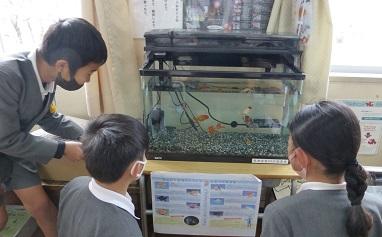 12月の金魚すくいセットに続き、長洲町より金魚と水槽を寄贈していただきました。立派な大きい水槽とポンプなどの付属品等、金魚に良い環境をすぐに整え、教室で飼うことができました。