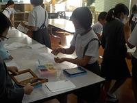 本日5・6時間目に4年生は、紙すき体験をしました。自分たちで集めた牛乳パックを使って、はがきをひとり3枚作りました。牛乳パックに使われているパルプ材はとても上質で、ミキサーにかけてドロドロにした材料を枠の中に中に流し込んで作る紙すき体験を子供たちは楽しみました。国語で学んだ「世界にほこる和紙」を発展させ、伝統工芸のすばらしさについて、リーフレットにまとめ、来週の全校集会で発表します。今日の体験で、和紙がより身近になったかもしれません。