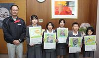 6年ゆきこさん、4年かんたさん、3年ゆうなさんの3人が熊本工場長賞に輝きました。自分の絵のついたカレンダー・時計が副賞として渡されました。かんたさんは、自分の部屋に飾ると喜んでいました。学校も、学校賞をいただき、副賞としてノート検定に使うスタンプをたくさんいただきました。