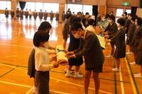 体育館で6年生を囲むような隊形で、6年生が入場しました。まずは、各学年からの呼びかけ、そして工夫を凝らして作成したメッセージを6年生に送り、「君に会えてよかった」を合唱しました。一人一人がよく声を出し、6年生へのお別れの気持ちを伝えました。6年生がかっこよかったという声が各学年から聞かれ、6年生はちょっと照れくさそうでした。