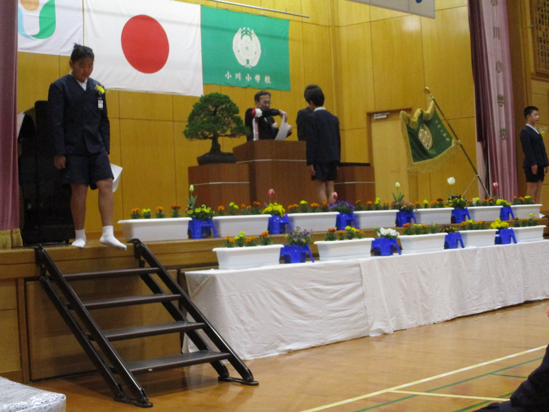 式のメインである、別れの言葉の呼びかけ「希望の門出」では、卒業生・在校生、お互いに感謝の思いが伝えられ、それぞれの合唱も心のこもった歌声で、小川小学校の歴史と伝統を感じさせる立派な態度で素晴らしい式となりました。