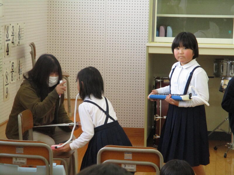 オープニングは、1,2年生による演奏でした。ステージ発表の内容や初市のお店について歌を作りました。一番初めの出番でもあったので、とても緊張している様子でしたが、楽しく紹介することができました。