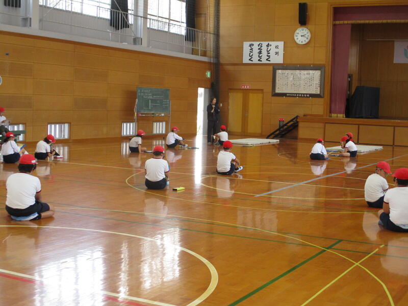 2年生の体育では体つくりのうんどうあそびとして、ならびっこキックベースに取り組みました。低学年にとって動くゴールに体を反応させることは至難の業。それでも果敢に攻めていました。運動場には元気な声が響いていました。