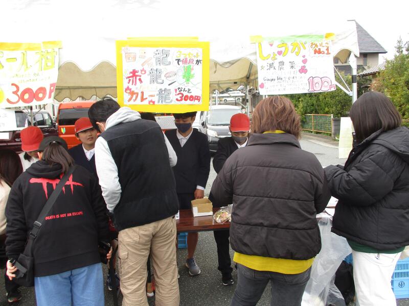 体験活動の一環として、初市に出店している店の補助を行いました。一生懸命声を出して宣伝していました。