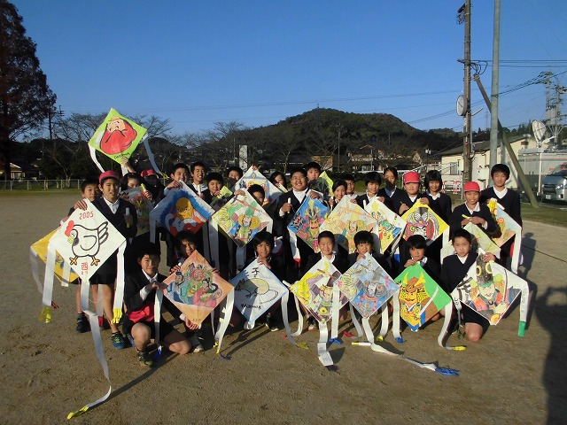 1月12日 小川凧保存会の先生方を13名お迎えし、6年生17名で小川凧をつくりました。