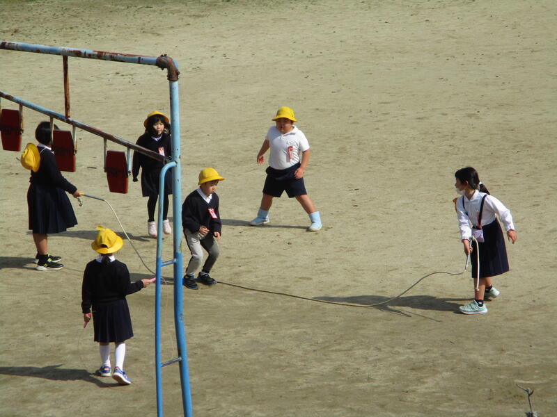 長縄についていうと、縄を回す人の技量も必要です。大人が入ったほうがうまくいく傾向にあります。今日は子供たちだけで、長縄を始めているところがありました。子供たち同士のつながりが強くなっていることに加え、自分たちの判断で行動できる姿も見ることができました。主体的に行動できる子供たち、自走できる集団が育っています。
