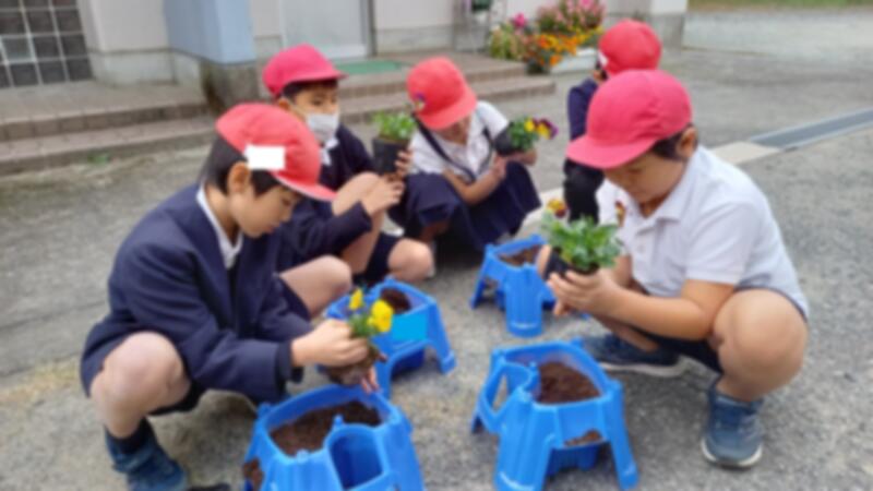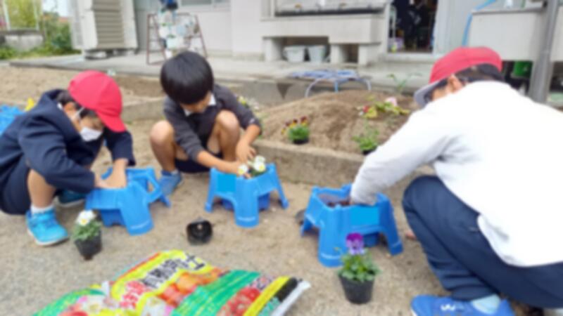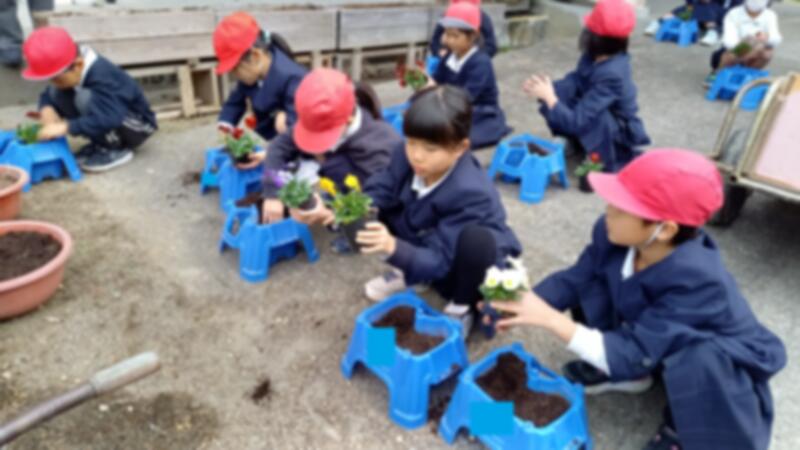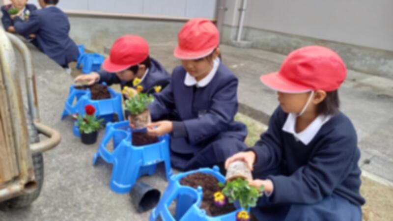 卒業式を華やかに彩るために、個人の鉢にチューリップとパンジーを植えました。きれいに咲かせるために、これから毎日のお世話を頑張りましょう。