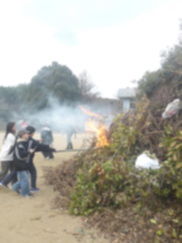 PTA主催どんどやを行いました。どんどやは、小正月に正月飾りなどを燃やし、無病息災や五穀豊穣をお祈りする祭りです。