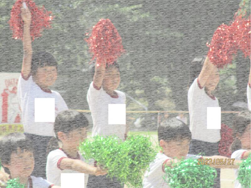 「元気」をテーマに、体をいっぱいに動かして踊っていました。低学年が踊っている姿を見ると、自然と笑顔になり、元気を分けてもらいました。最後の決めポーズもとてもかっこよかったです。