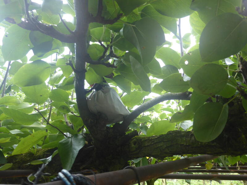 総合的な学習の時間「砂川と私たちのくらしとのつながり」の学習で、地域にある米田様の梨園に見学に行きました。「初めて木になっている梨を見ました。」と驚いている児童もいました。