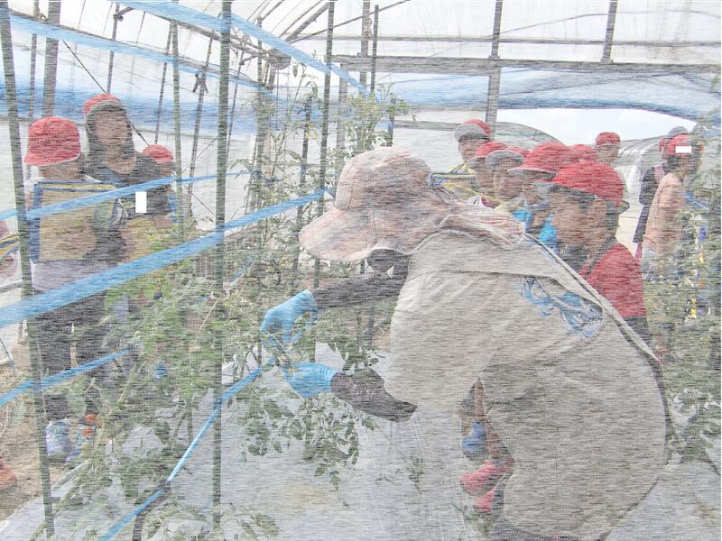 社会「農家の仕事」の一環で、ミニトマトを栽培されている藤山様のビニールハウスを訪問しました。道具や作業を見せていただいたり、収穫体験をさせていただいたりしました。子供たちにとって貴重な経験になりました。